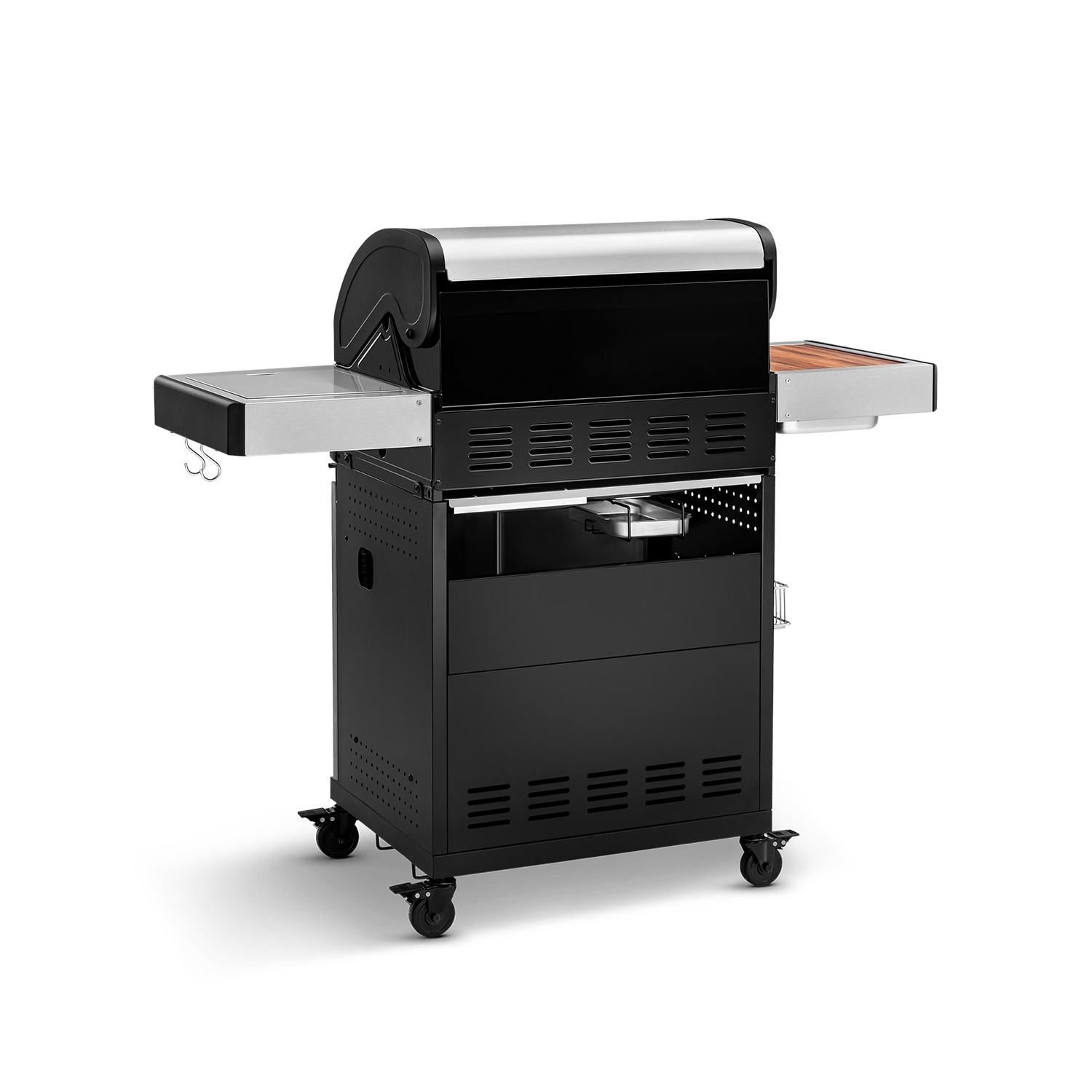 Brennkammer & Korpus: 100 % Edelstahl. Klappbare Seitentische und viel Stauraum.