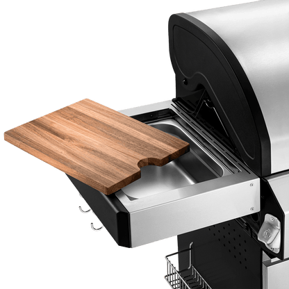 Flammenverteiler aus Edelstahl in W-Form ermöglichen eine gleichmäßige Hitzeverteilung. Mit der passend mitgelieferten Smoker Box aromatisierst du dein Grillgut ganz easy.