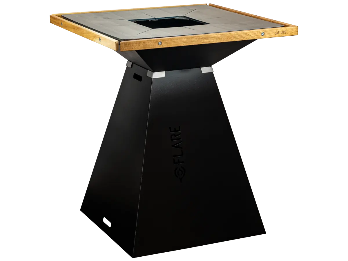 Die schwarze Version des FLARE 80 besticht durch seinen schwarz lackierten Sockel und einer hitzebeständig beschichteten Feuerschale. Dies verleiht dem Grill seinen edlen schwarzen Look und bietet Schutz vor Umwelt Einflüssen.