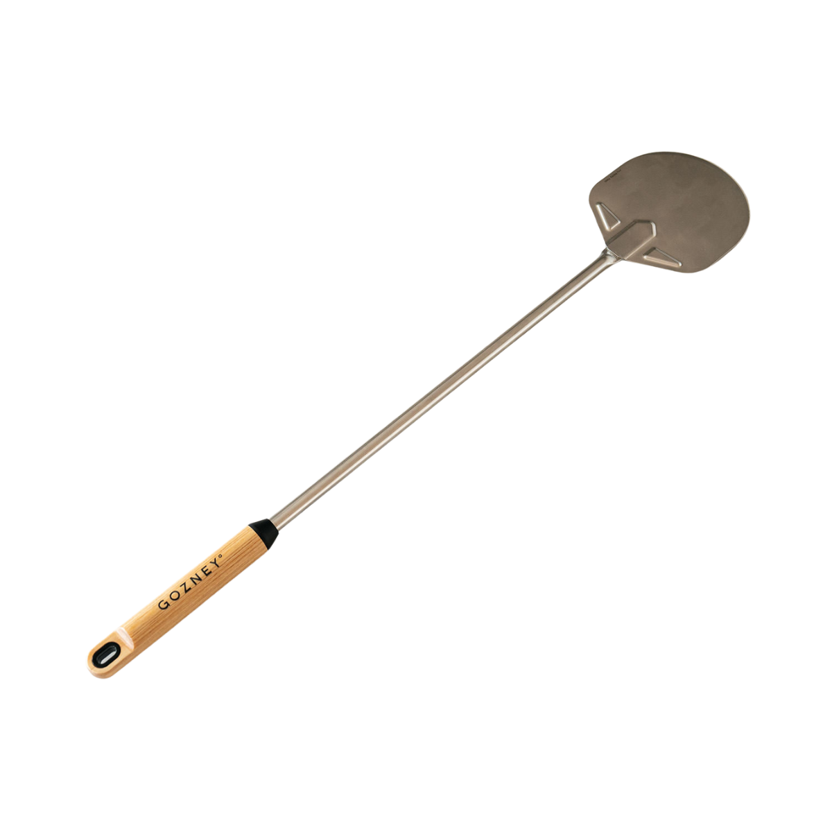 Entdecken Sie die vielseitige GOZNEY Utility Turning Peel, ein unverzichtbares Werkzeug für jeden Pizzabäcker und Grillmeister. Diese hochwertige Wendehandschaufel ermöglicht Ihnen das mühelose Drehen und Servieren von Pizzas und anderen Backwaren mit Leichtigkeit.